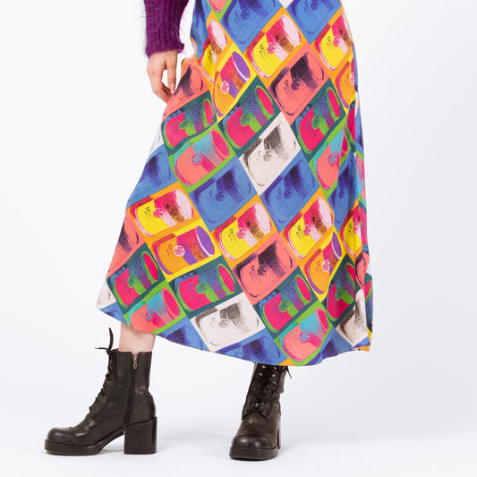 Vintage 90s Pop Art Andy Warhol Graphic Silk Maxi Skirt - Medium