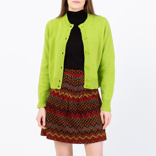 Vintage 90s Lime Green Wool Knit Cardigan - Small