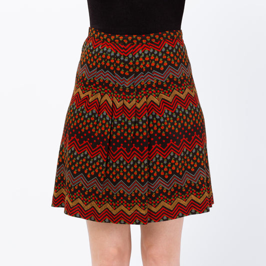 Vintage 70 Boho Floral & Chevron Striped Mini Skirt - Small