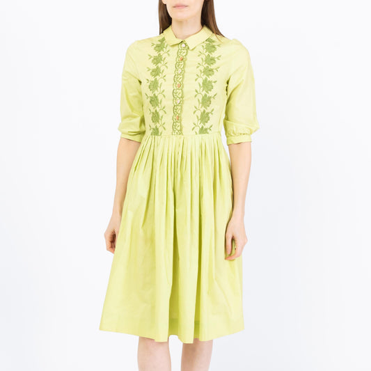 Vintage 50s Chartreuse Embroidered Fit & Flare Dress - Extra Small