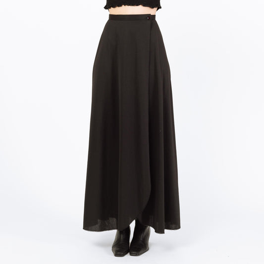Vintage 70s Black Maxi Wrap Skirt - Extra Small, 23" Waist