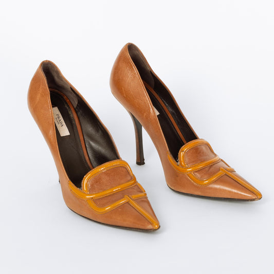 Vintage Prada 90s Y2K Cognac Brown Leather Pumps - Size 8.5