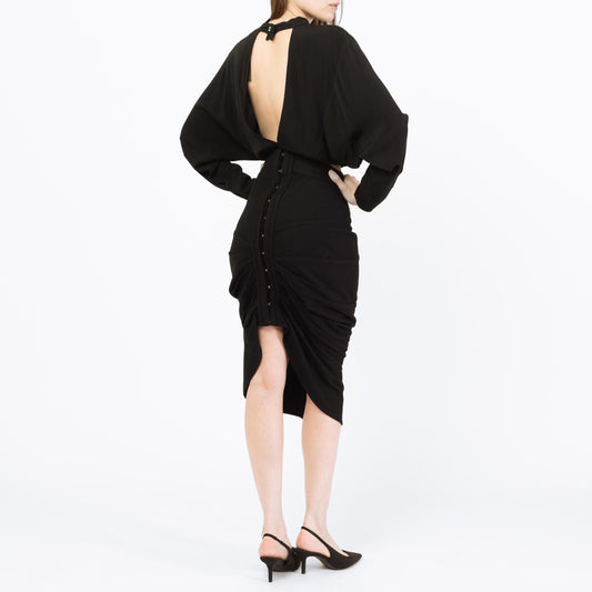 Vintage 90s Black Cage Back Mini Dress - Petite Small