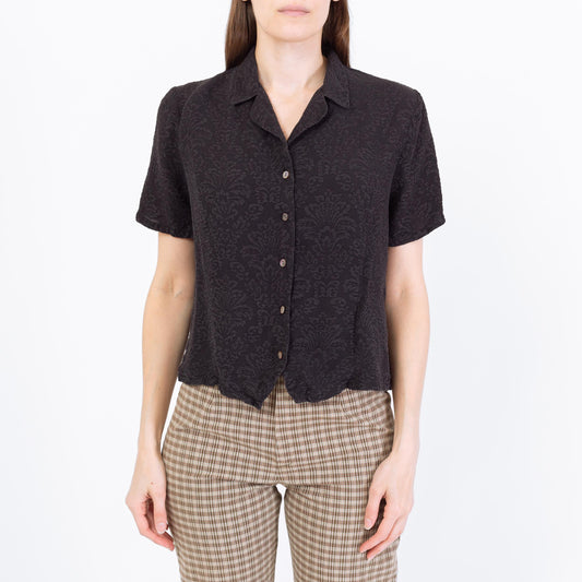 Vintage 90s Black Silk Damask Floral Shirt - Large