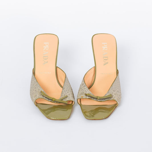 Vintage Prada 90s Y2K Embossed Leather Bow Mules - Size 36