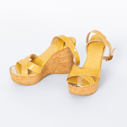 Vintage Jimmy Choo Patent Leather Cork Wedge Sandal - Size 37