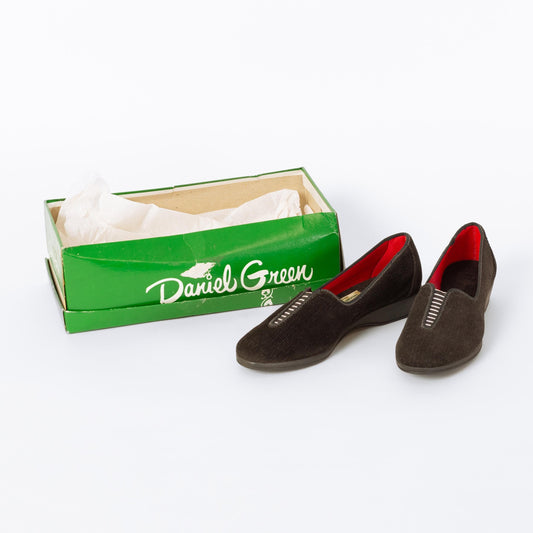 Vintage 50s 60s Daniel Green Black Corduroy Slippers - Size 5.5