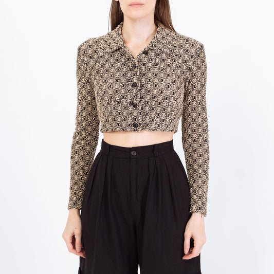 Vintage 90s Two-Tone Boucle Knit Crop Top - XS to Small