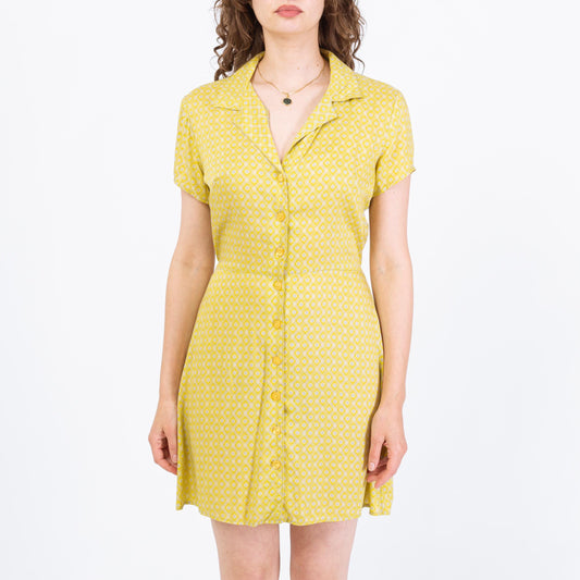 Vintage 90s Chartreuse Floral Boho Mini Dress - Medium