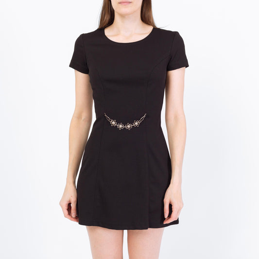 Vintage 90s Black Flower Chain Belt Mini Dress - Small