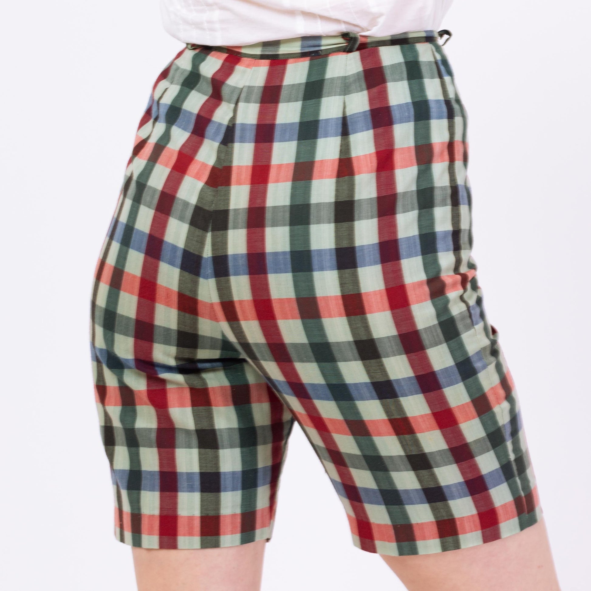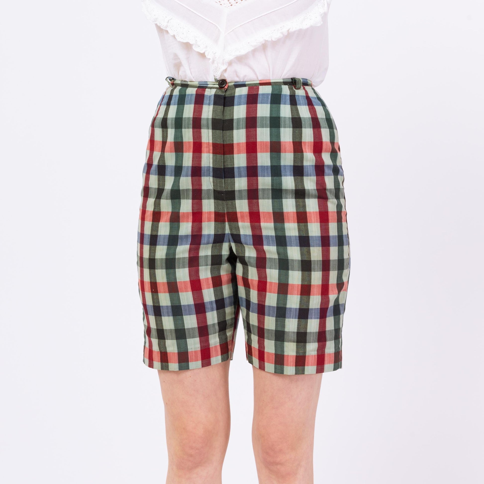 Vintage 60s 70s Jewel Tone Plaid Fitted Shorts - Small, 26" Waist