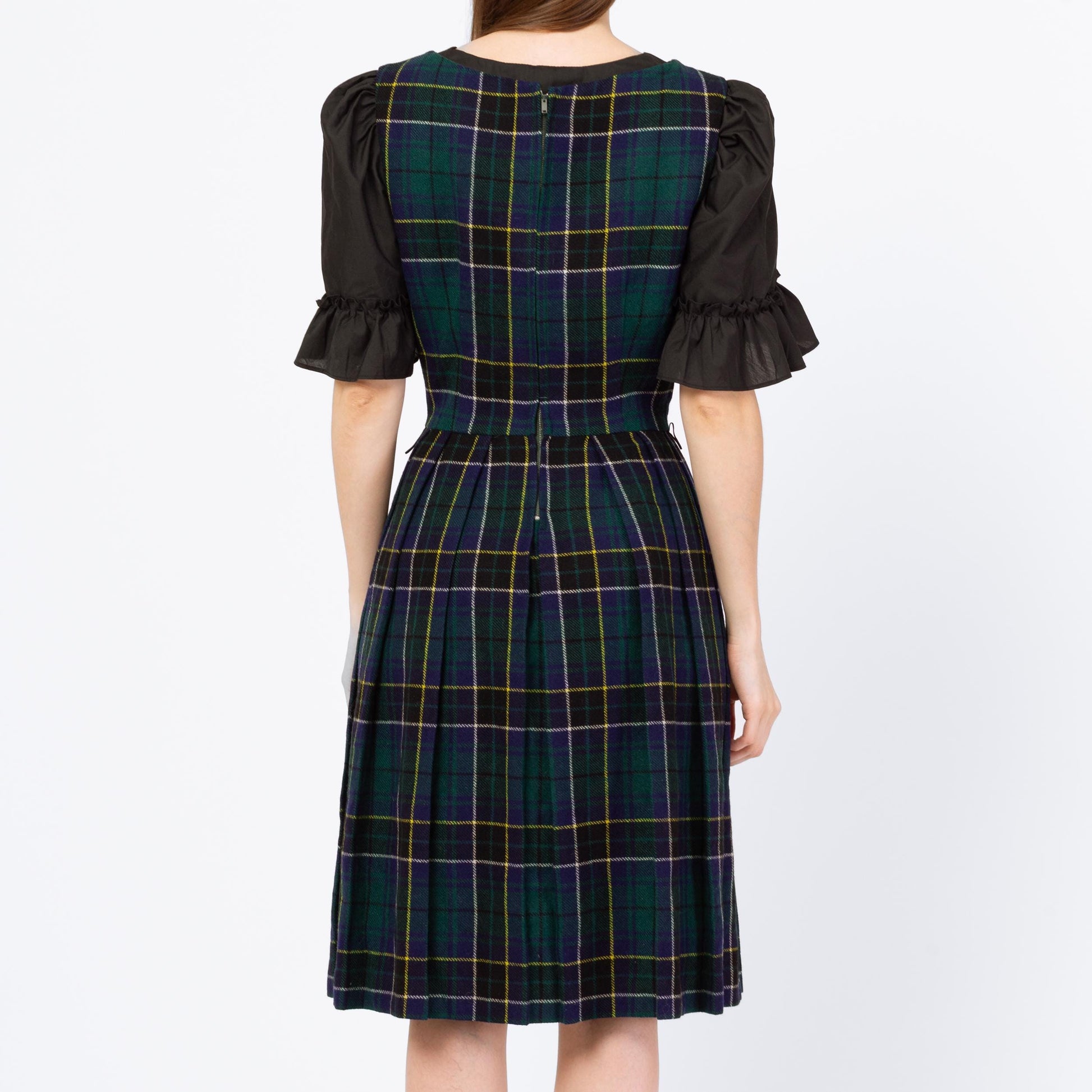 Vintage 60s Green Scottish Tartan Pinafore Dress - Small
