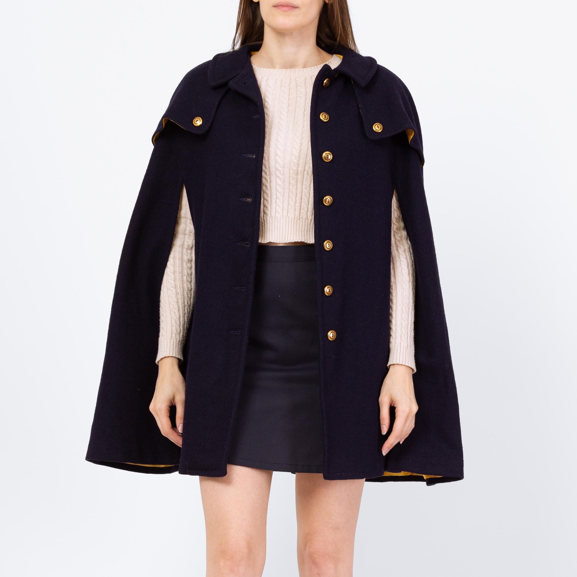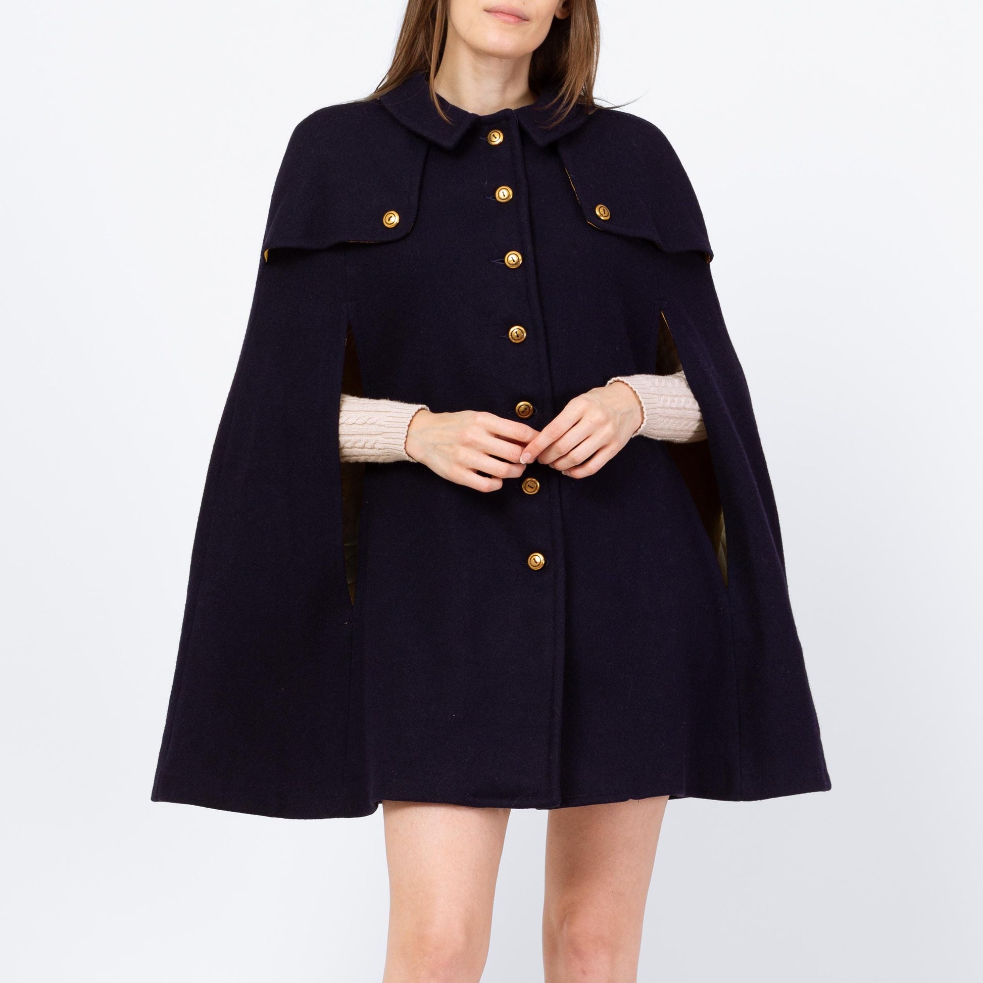Vintage 60s Mod Navy Blue Wool Cape - Small