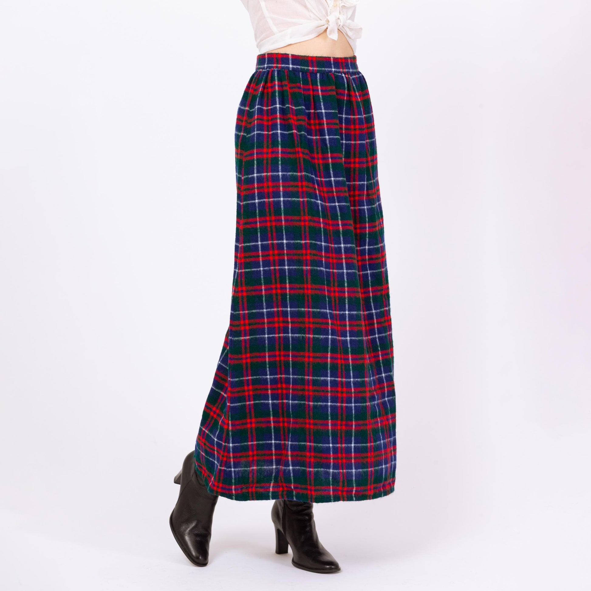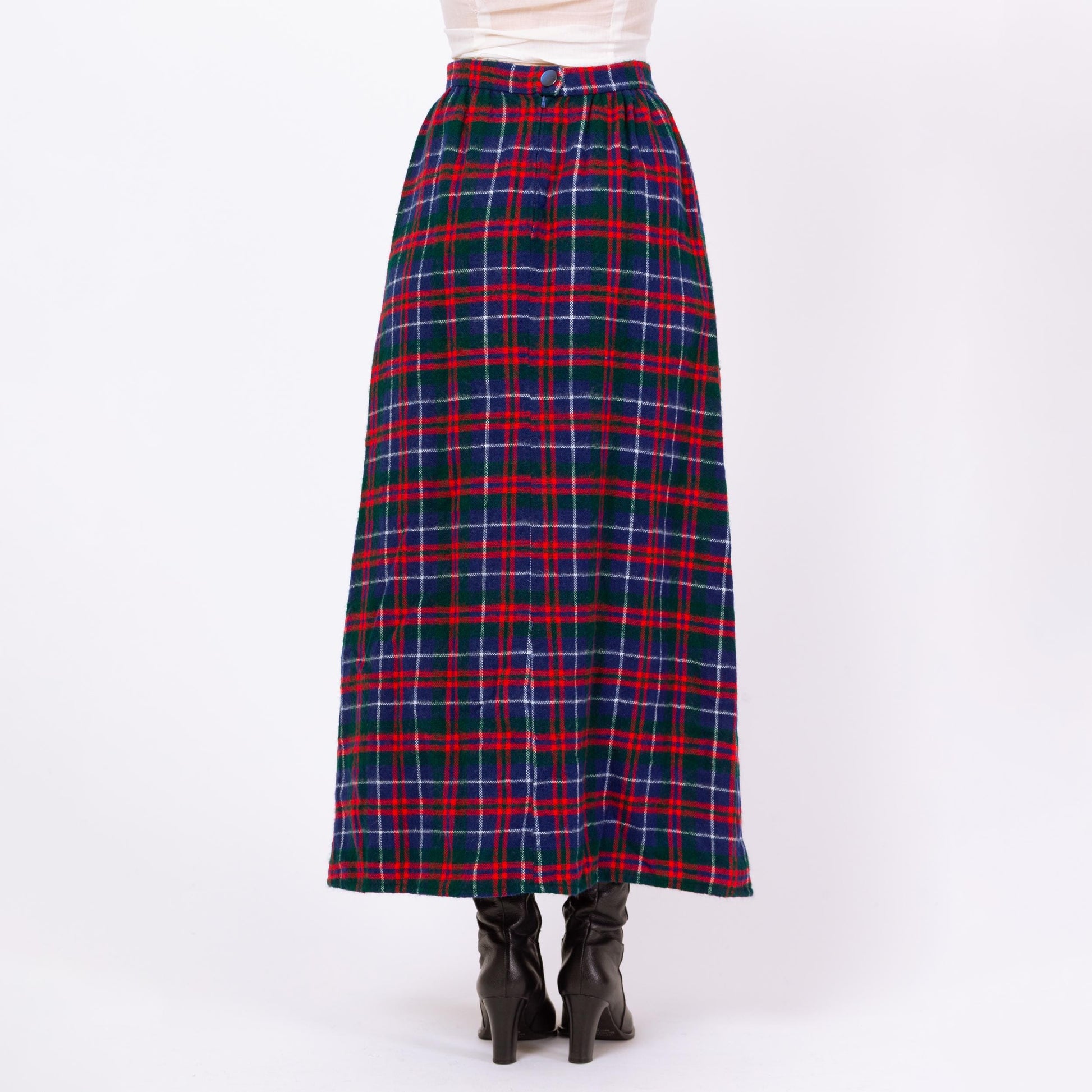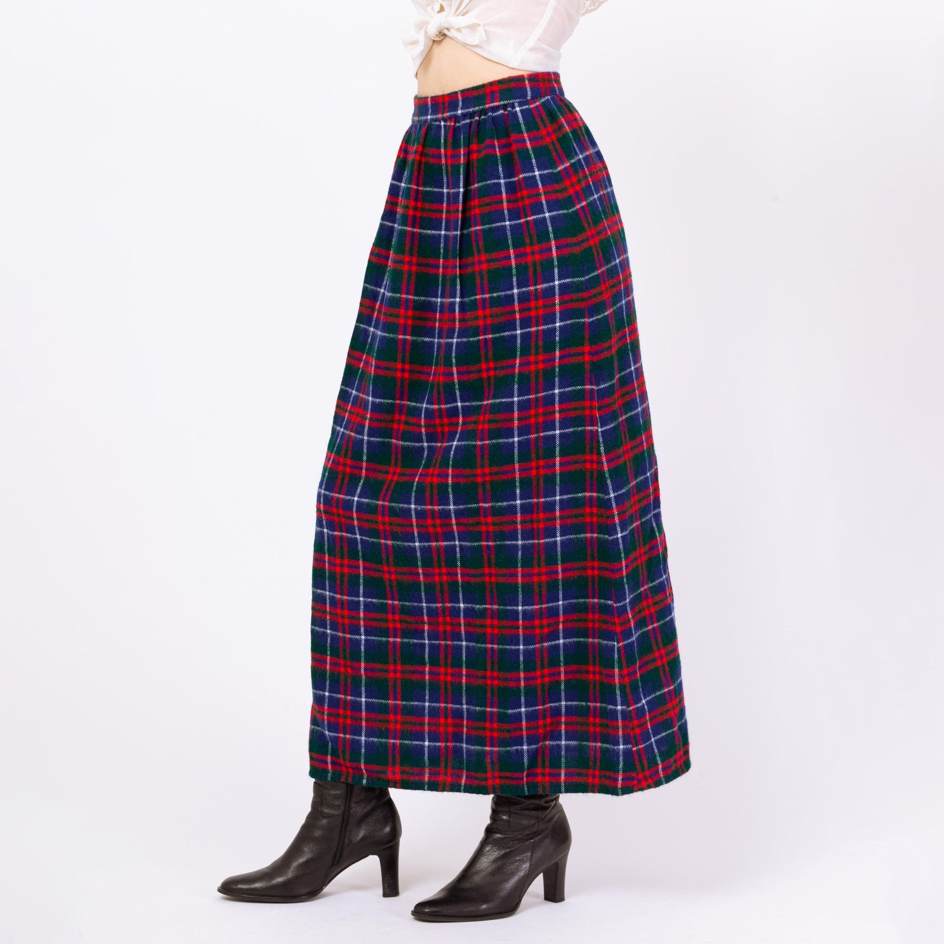 Vintage 60s Plaid Soft Knit High Waist Maxi Skirt - Small, 26" Waist