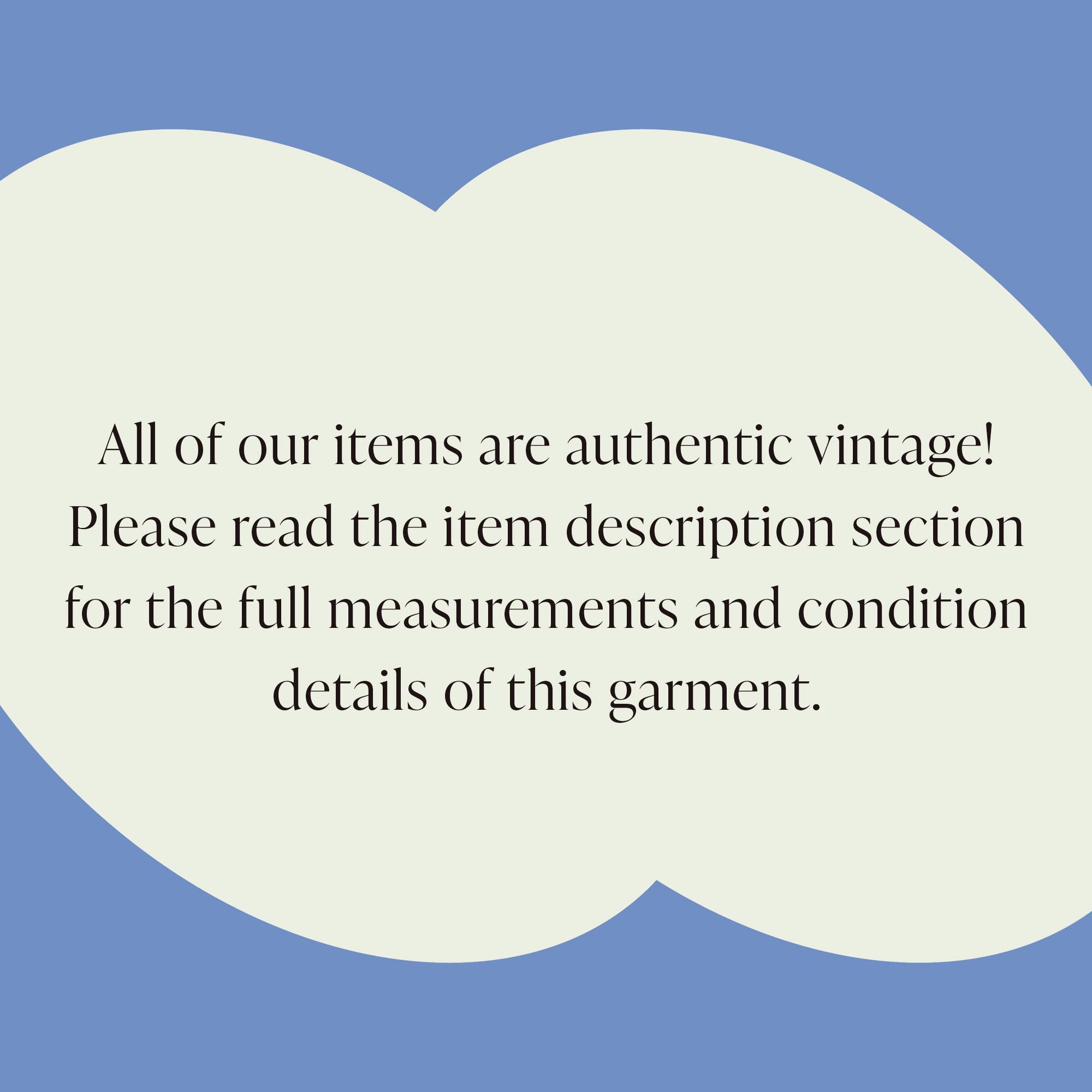 To best ensure that you are happy with your item, we ask that you read through the measurements and condition notes before making your purchase. However, if it doesn't work out, we do accept returns for store credit if we are contacted and the item is sent back in its original condition within 14 days of delivery. The buyer is responsible for return shipping costs, and the store credit amount issued is for the item price only minus a $7 restocking fee. If the item is not returned in its original condition, the buyer is responsible for any loss in value.