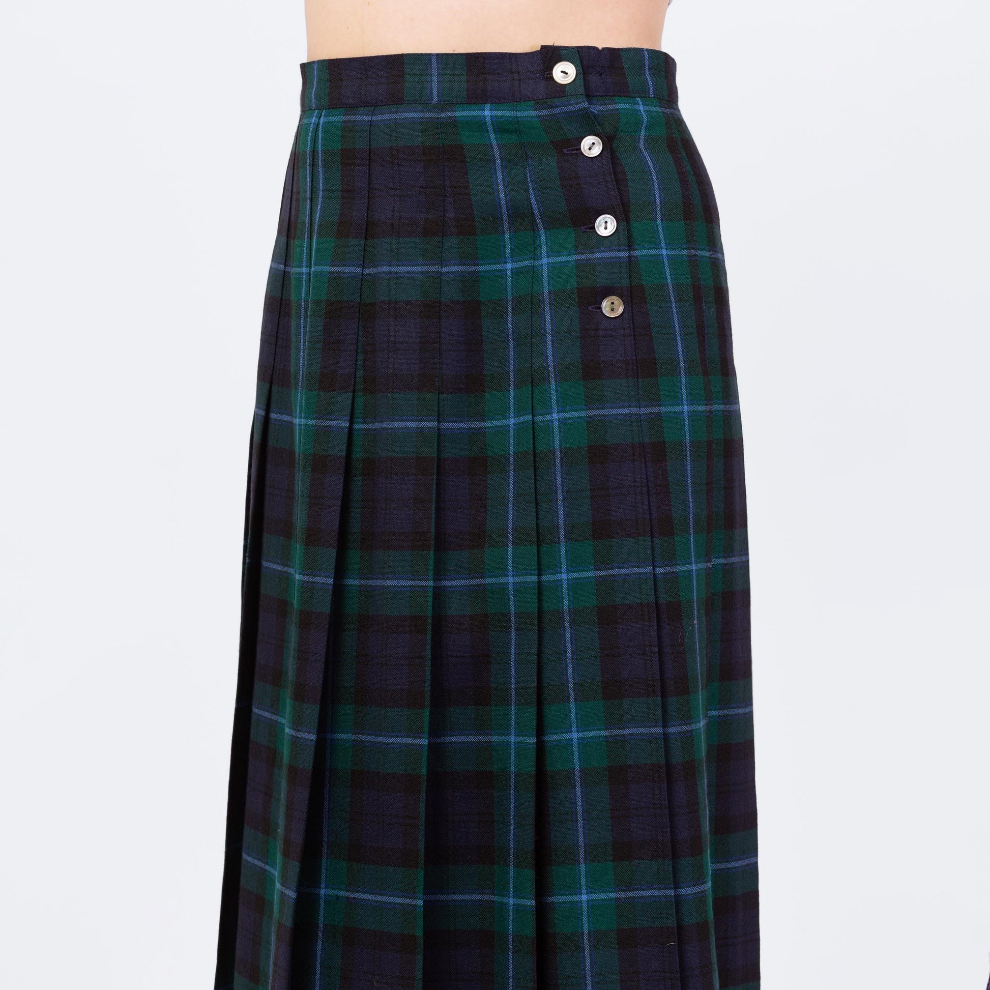Vintage 80s Dark Plaid Wool Midi Skirt - Medium, 29" Waist