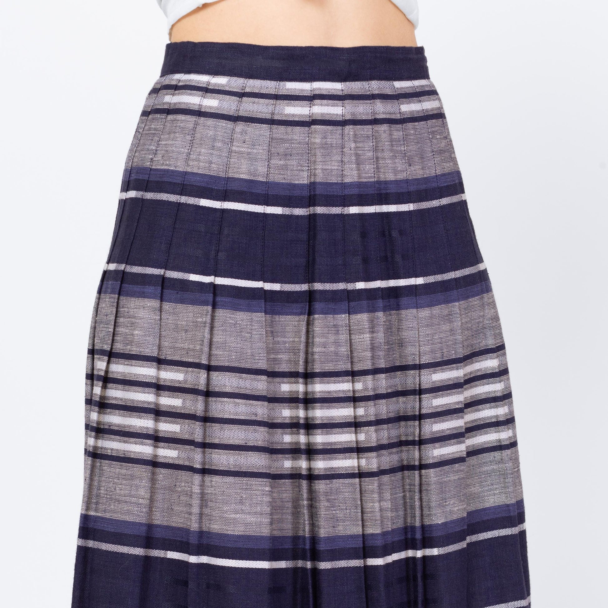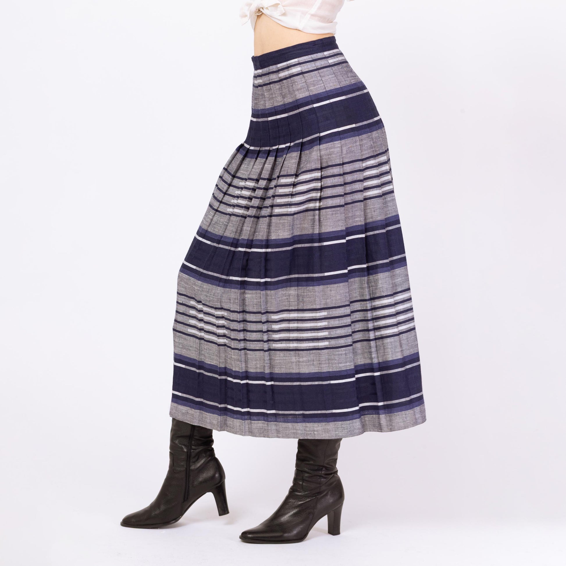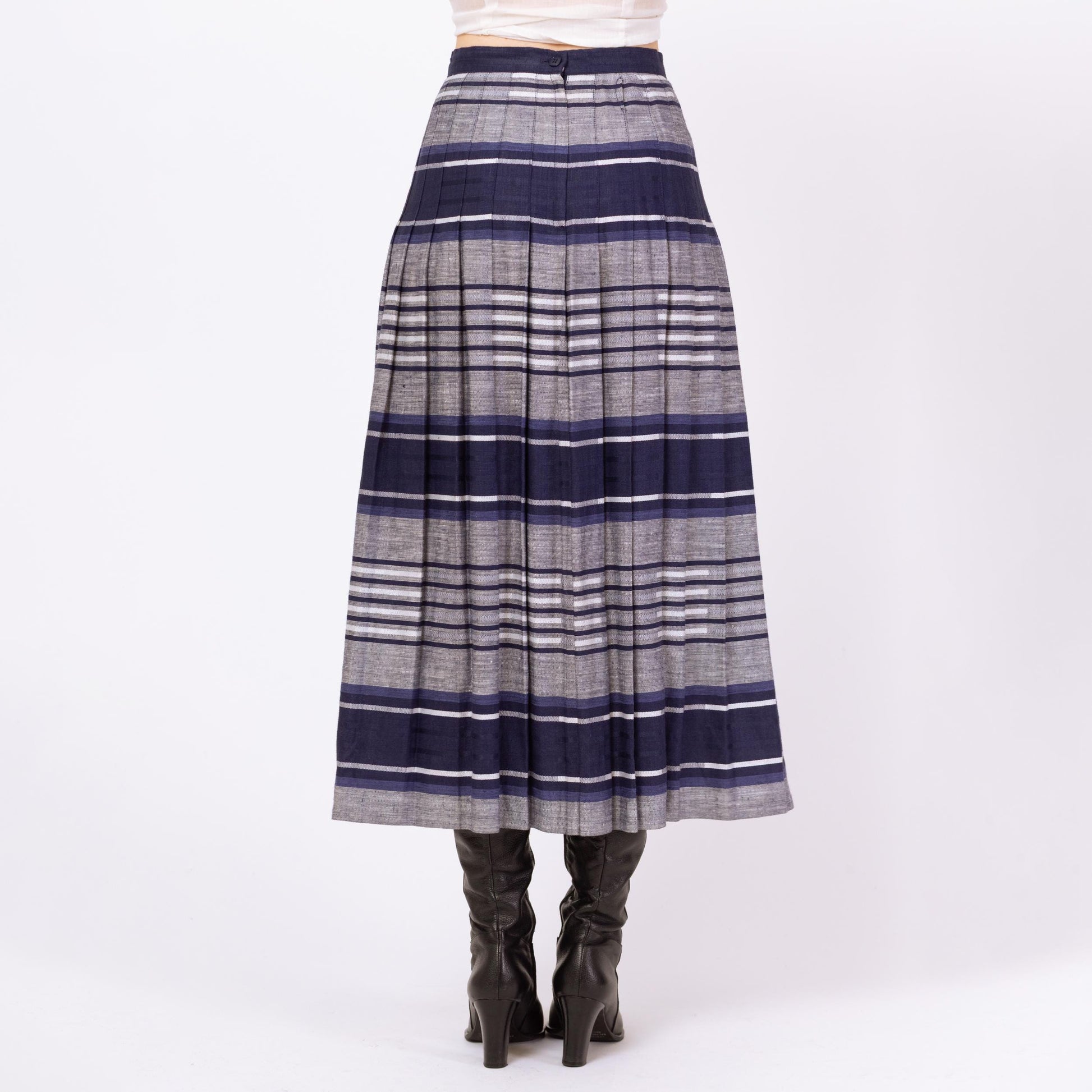 Vintage 80s Navy Blue & White Plaid Pleated Midi Skirt - Small, 26" Waist