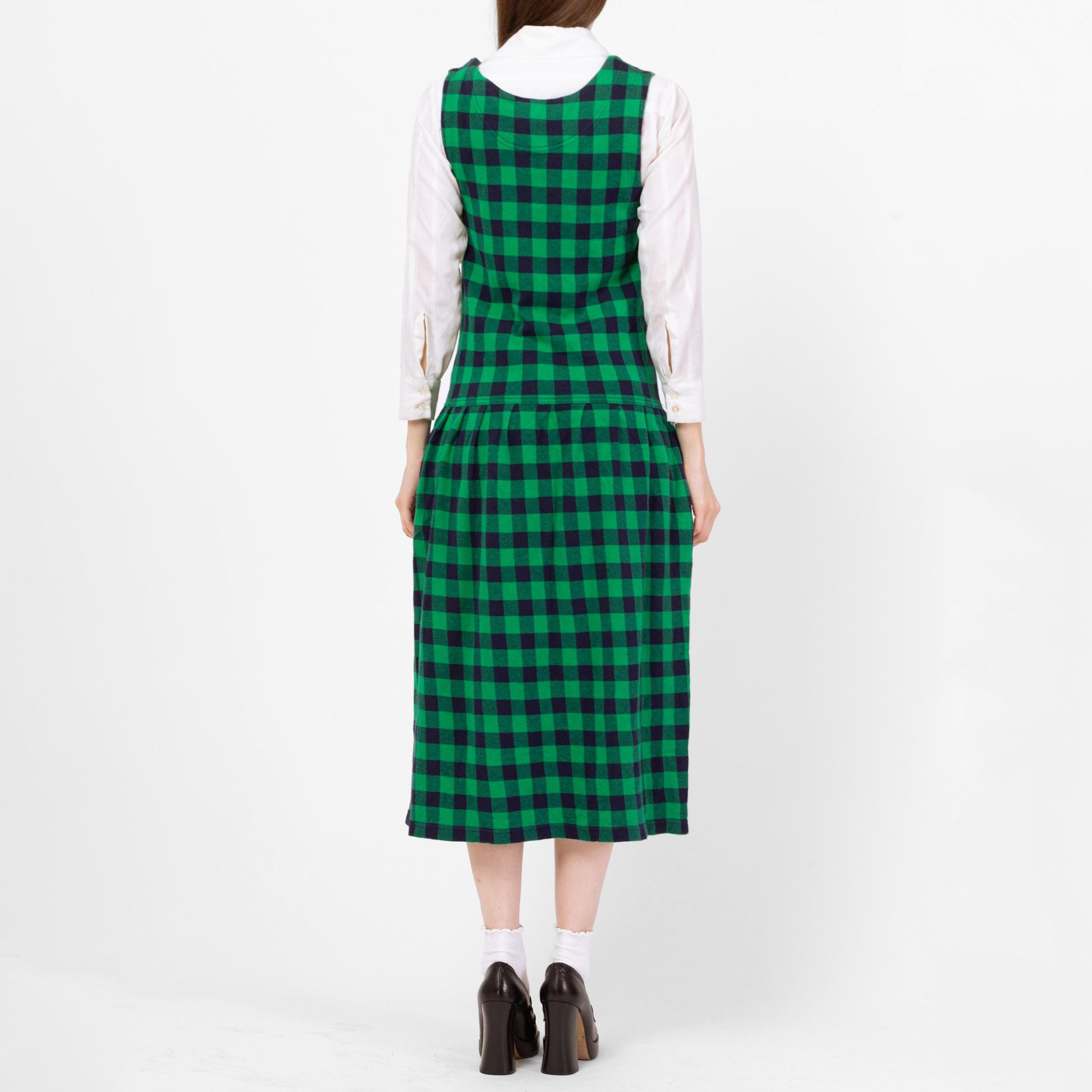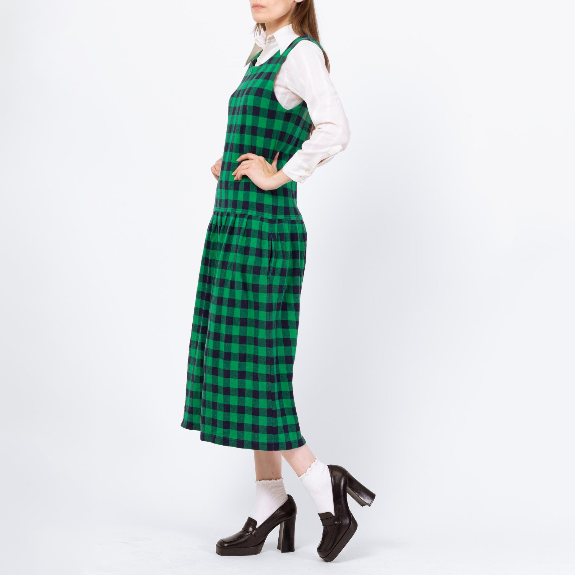 Vintage 90s Izod Green Gingham Pinafore Midi Dress - Small