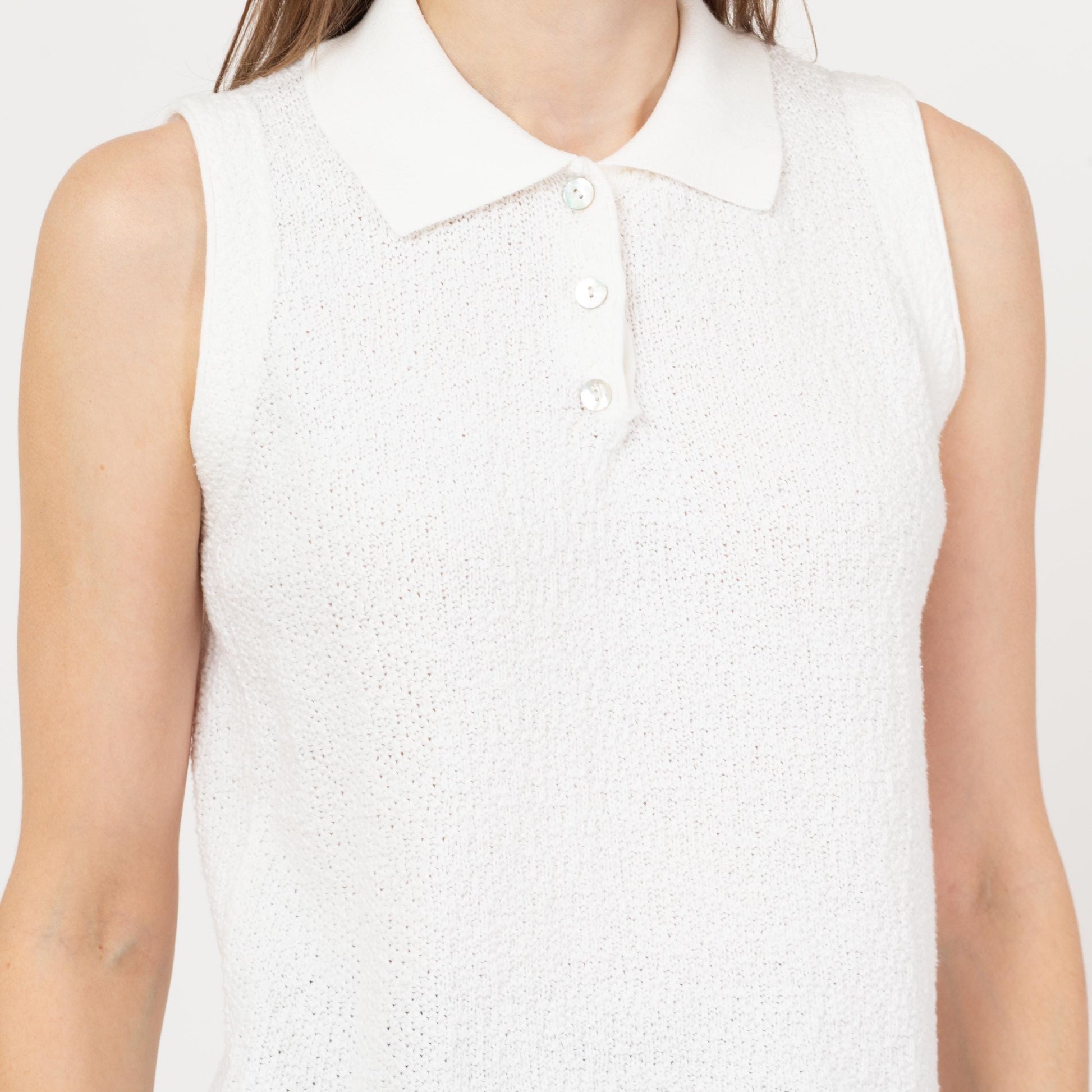 Vintage 90s White Cotton Knit Polo Top - Medium